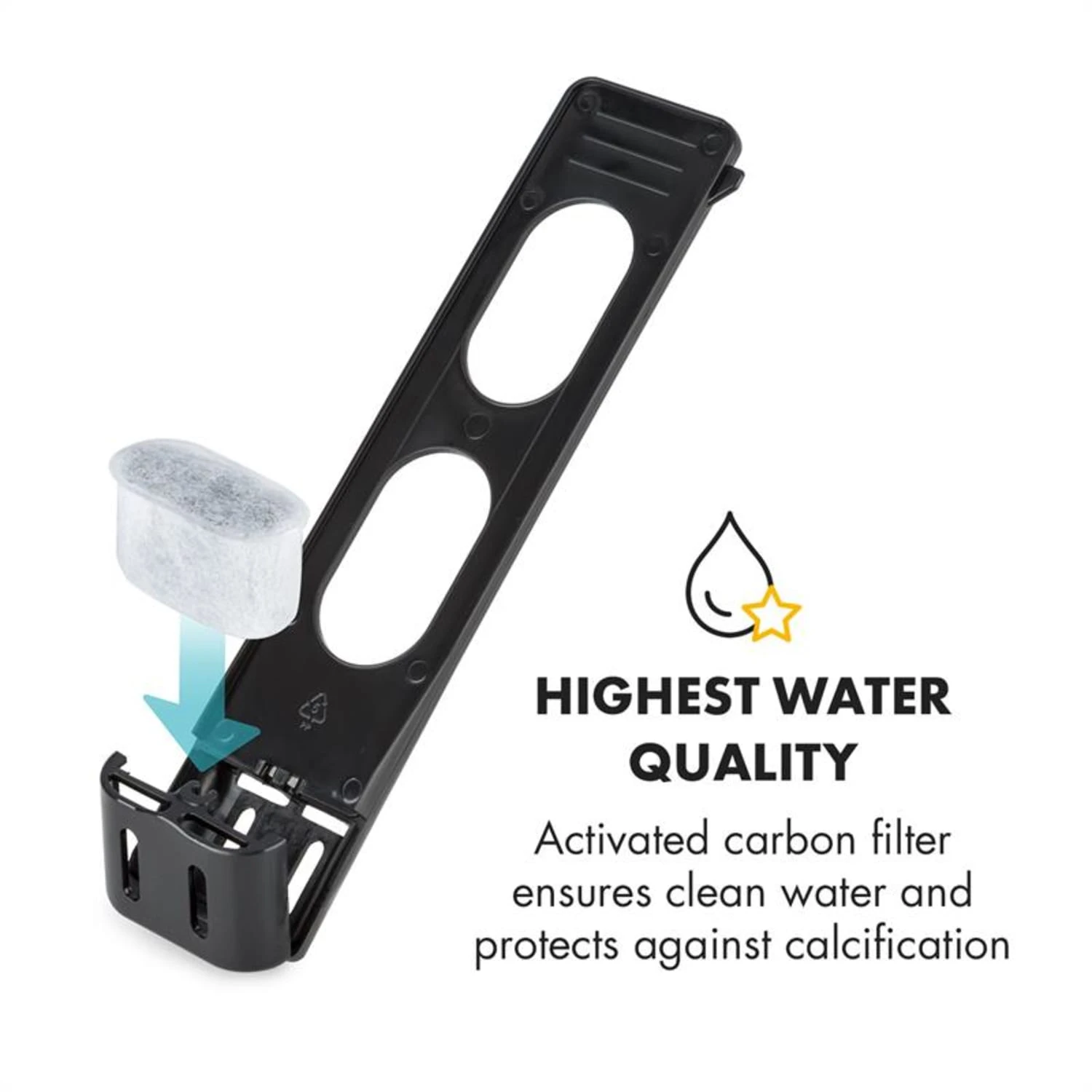 - integrierter Aktivkohle-Filter im Wassertank zur Enthärtung des Wassers