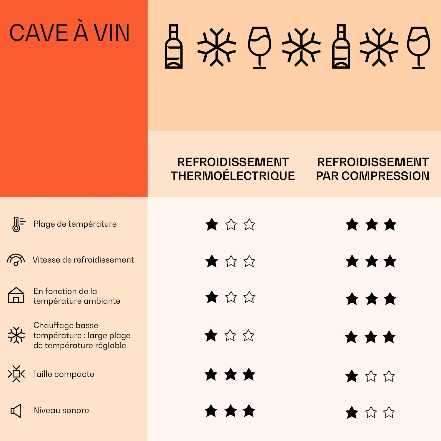 Mit seinen praktischen Maßen ist der Weinkühlschrank perfekt für die freistehende Nutzung in Küchen, Bars, Wohnzimmern oder Weinlagerräumen geeignet. Besonders elegant ist der Look des Bellevin 62, der auf die gehobene Präsentation ausgelegt ist: Die Glastürgestattet jederzeit den Einblick ins Innere, das von der zuschaltbaren Beleuchtung passend in Szene gesetzt wird. Für störungs- und klirrfreie Lagerung der Weine greift der Weinschrank auf eine vibrationsarmes Kompressionskühlsystem zurück.