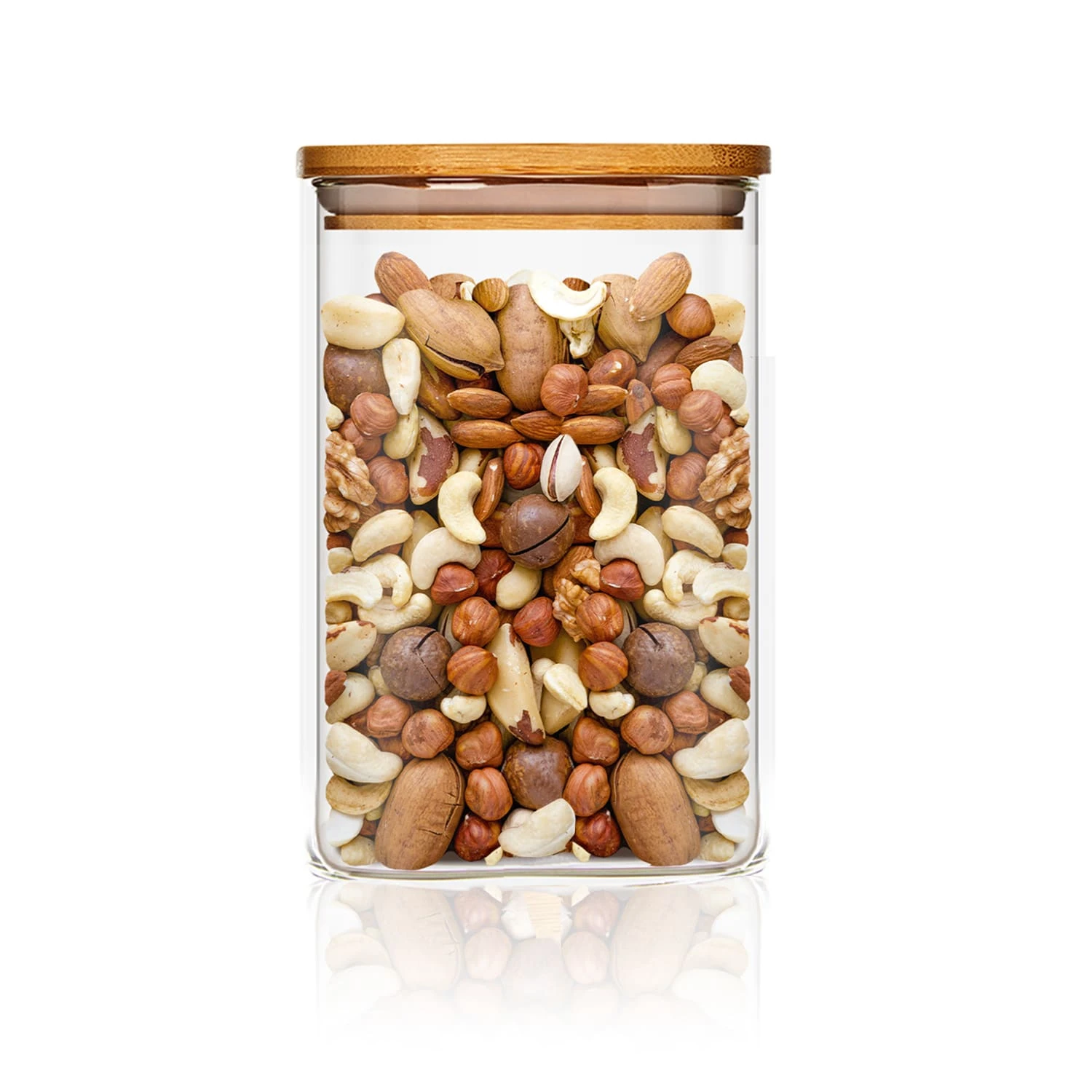 Mit dem hochwertigen eckigen Glas mit Bambusdeckel von Klarstein kannst du Lebensmittel optimal lagern, denn sie bleiben lange frisch. Der schöne Deckel aus 100 % Bambus liegt luftdicht auf, so behalten die aufbewahrten Zutaten lange ihr Aroma. Dank Silikonring ist alles extra luftdicht verschlossen. Zudem ist der Deckel feuchtigkeitsresistent und besonders langlebig, das Vorratsglas von Klarstein besonders geschmacksneutral, hitze- und kältebeständig. Für eine leichte Reinigung kannst du das Glasgefäß ohne Deckel sogar in die Spülmaschine geben.