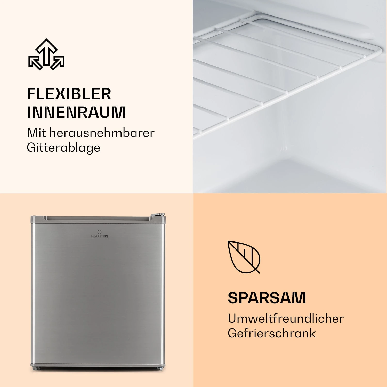 Der Klarstein Garfield Eco ist ein kompakter und sparsamer Gefrierschrank, der frischen Wind in die Küchen von Singles und kleinen bis mittleren Haushalten bringt. Mit ihm kannst du auch bei begrenzten Platzverhältnissen deine Lebensmittel ideal einfrieren und setzt zeitgleich noch ein modernes Design-Highlight in deiner Küche.