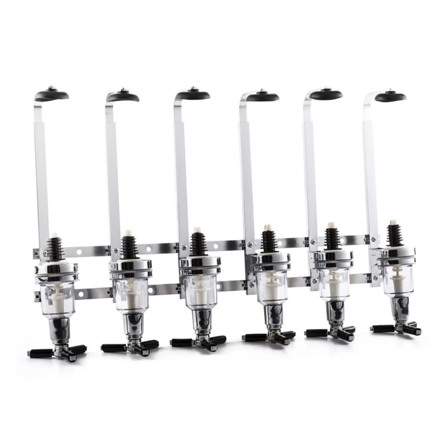 Dabei überzeugt der Dosierer vor allem durch seine Funktionalität: vier unterschiedlich große Getränkeflaschen – von 0,7 bis 1 Liter – finden im Hazlehov Sixtett Platz und werden so standesgemäß in Szene gesetzt. So lassen sich beispielsweise Shot Gläser, hochpräzise und innerhalb von Sekunden mit 0,4 cl Flüssigkeit befüllen. Abgerundet wird der Funktionsumfang durch den Schnellwechselmechanismus der vier Dosierer.