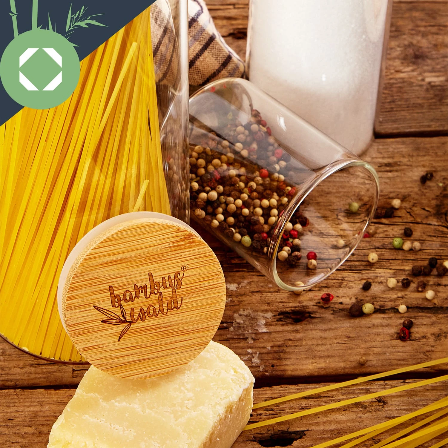 Gewürze sind etwas Wunderbares: sie verzaubern nicht nur alle Speisen, sondern bringen meist exotische Farben mit sich. Fülle sie in ein rundes Glas von Klarstein, nutze ihre Optik als einzigartige Dekoration und erlebe maximalen Komfort beim Würzen. Dank der Deckel aus reinem Bambus mit Silikonring kannst du die Gläser fest und luftdicht verschließen, das erhält das Aroma der Gewürze langfristig. Natürlich kannst du auch Tees, Backwaren oder Süßigkeiten mit den Gläsern schön in Szene setzen.